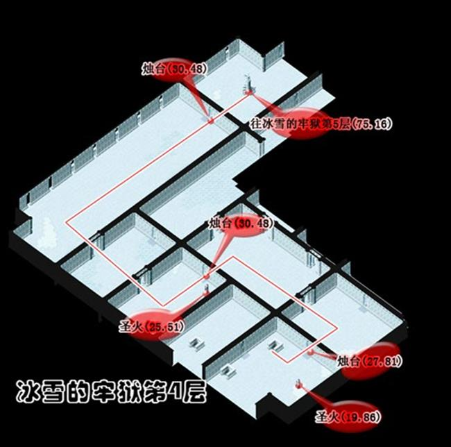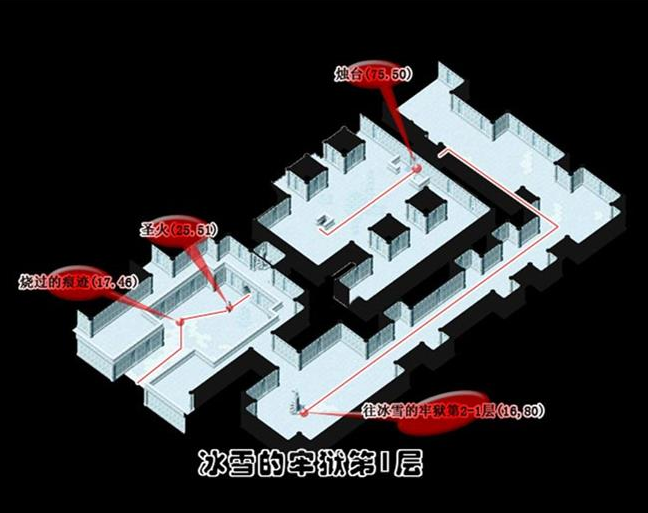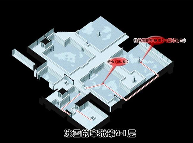 1.前往蒂娜村,出村北门至莎莲娜岛(528.209)处与克里斯多夫祭司对话,进入莎莲娜东方洞窟。 莎莲娜洞窟行走路线: 2.通过莎莲娜东方洞窟抵达莎莲娜岛。前往(382.82)处废屋,调查书架(16.8)获得【古文书】。(此步可跳过) 3.前往(381.27)处进入被封闭的祭坛,与依代(10.9)对话进入战斗。 封闭的祭坛行走路线: 4.战斗胜利后与阿斯提亚神官(15.5)对话,传送至佛利波罗岛,往东北方向至(97.166)处进入冰之洞窟。 5.通过冰之洞窟(66.16)抵达佛利波罗岛,前往(174.103)处进入冰雪的牢城。 冰之洞窟行走路线: (到达冰雪牢城后可通过月光使者20:46,交出15W魔币省去流程至8楼露比处。想体验的可按官方步骤进行) 6.调查(17.46)处被火燃烧过的痕迹,选“是”获得【火把】。 7.调查圣火(25.51),交出【火把】获得【苍炎的火把】。 8.调查烛台(75.50),交出【苍炎的火把】获得【火把】并切换地图。 ◆每次调查圣火,可将【火把】兑换成【苍炎的火把】;每次调查烛台后,【苍炎的火把】会变成【火把】 冰雪牢城行走路线: 9.前往冰雪的牢城8楼,与露比(46.47)对话进入战斗。 10.战斗胜利后,一定几率队伍随机获得【暴食的罪书】100%。与露比对话获得【冰之约束】。